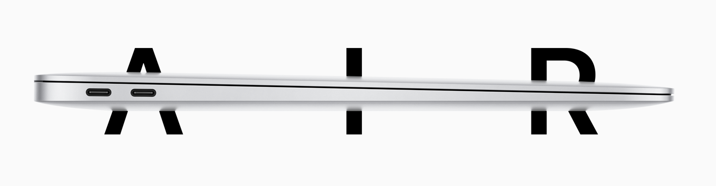 Thunderbolt 3 associe une bande passante extrêmement élevée à l’immense polyvalence de la norme USB‑C pour créer un port universel reboosté. Et le MacBook Air ne possède pas un, mais deux ports Thunderbolt 3. Cette technologie réunit dans un même connecteur le transfert de données, la sortie vidéo et l’alimentation, en offrant jusqu’à 40 Gbit/s de débit, soit deux fois la bande passante de Thunderbolt 2. Vos appareils actuels se connectent facilement à l’aide d’un câble ou d’un adaptateur. Et comme Thunderbolt 3 est réversible, peu importe la façon dont vous le branchez : il est toujours dans le bon sens.